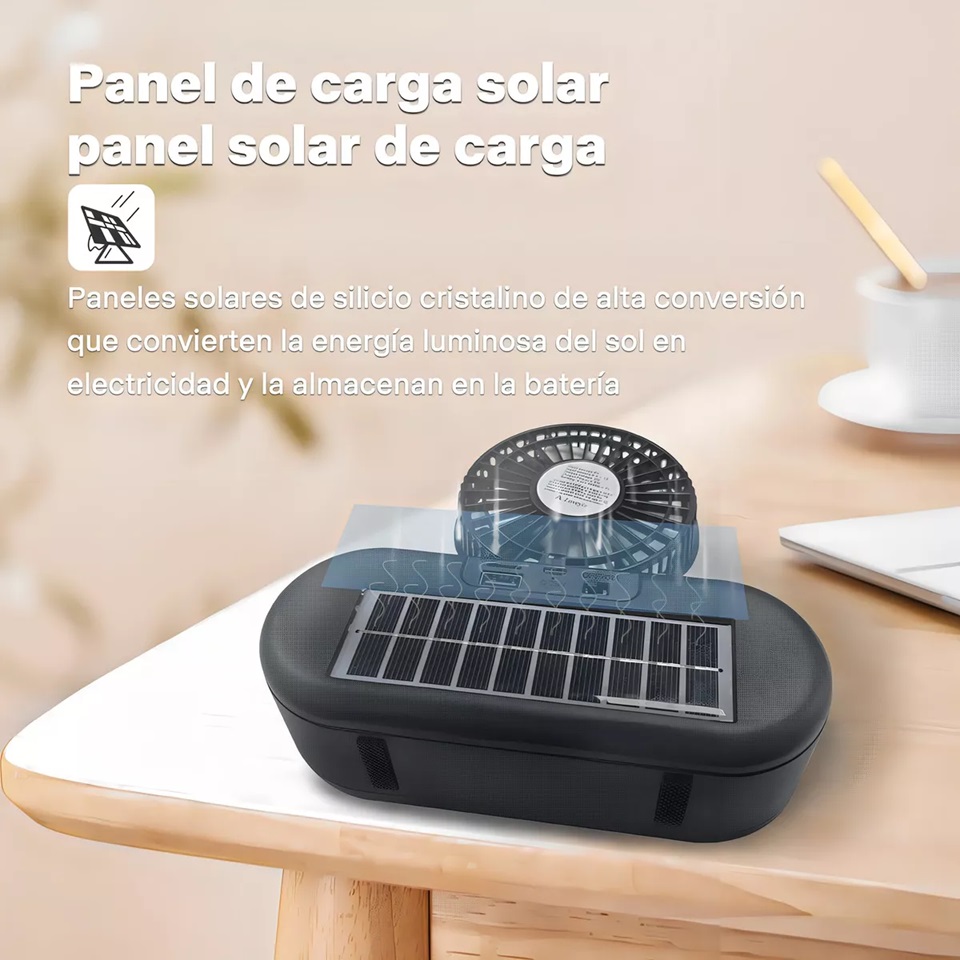 PARLANTE SOLAR LINTERNA VENTILADOR RADIO