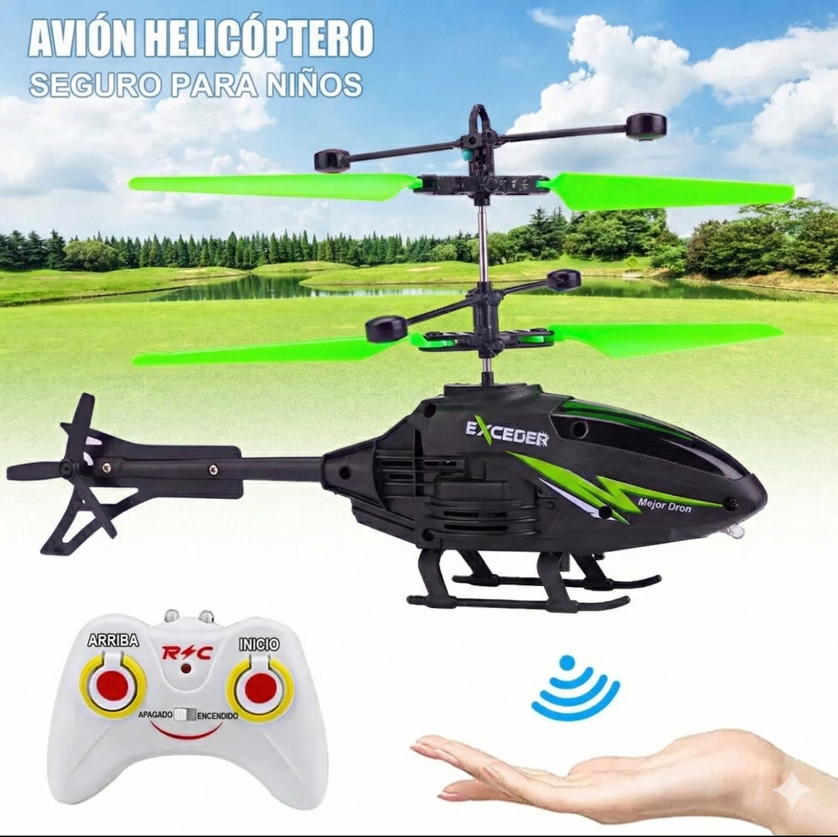 🪄 Control Mágico sin Tocarlo: Gracias a sus sensores infrarrojos, el helicóptero detecta tu mano debajo y se eleva automáticamente. ¡Es como tener superpoderes! Los niños alucinarán intentando "atraparlo" mientras flota.