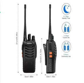 Con un alcance máximo de 8 km, es perfecto para excursiones, campamentos o situaciones donde la comunicación a larga distancia es esencial. Su función de manos libres permite una mayor comodidad, permitiendo que puedas comunicarte sin necesidad de sostener el dispositivo. Aunque no cuenta con pantalla ni Bluetooth, su diseño simple y funcional lo convierte en una opción práctica y accesible.